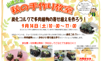 たくさんのご参加ありがとうございました 三連休初日の9月14日(土)、6回目のイベントとなる《炭化コルクで多肉植物の寄せ植え作り》のワークショップを開催しました。 この日、最初のお客様は… 山 […]…