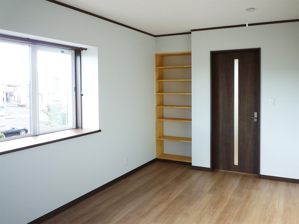 本好きのご家族様のために、造作の本棚も2階の各部屋にご用意し、地震への備えも万全にいたしました。